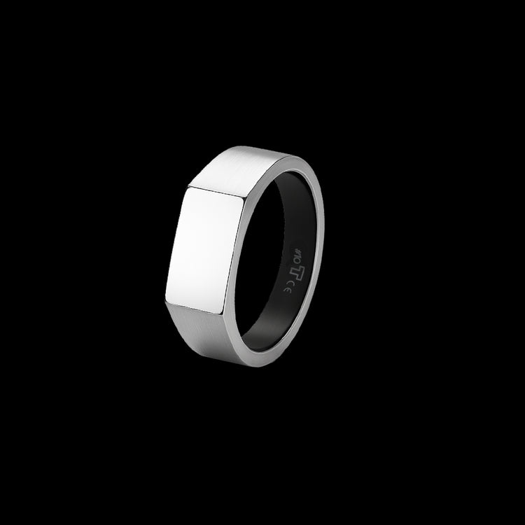 Crafted in brushed stainless steel with a polished signet top. No screens, no charging, no complications. Just a durable material built around a secure NFC core. Always on. Always ready.